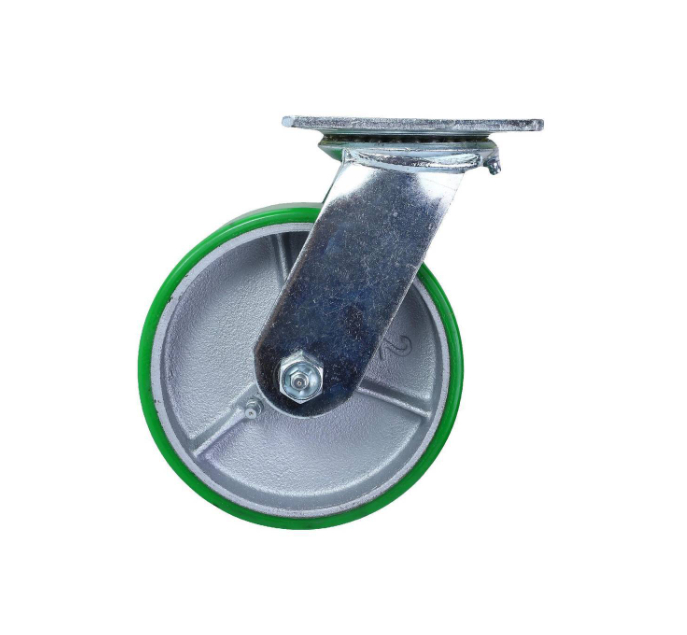 Castor Green PU/Cast Iron Swiv/Plate 150mm