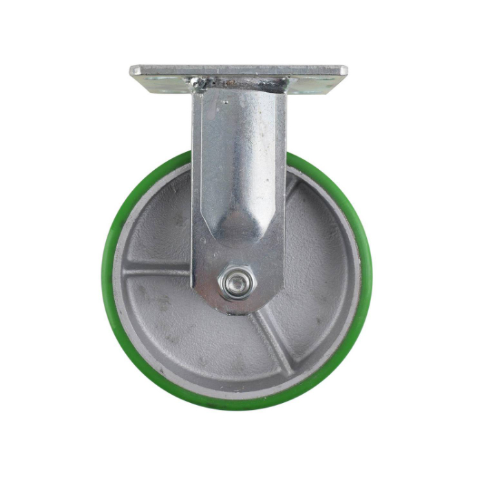 Castor Green PU/Cast Iron Fixed Plate 150mm