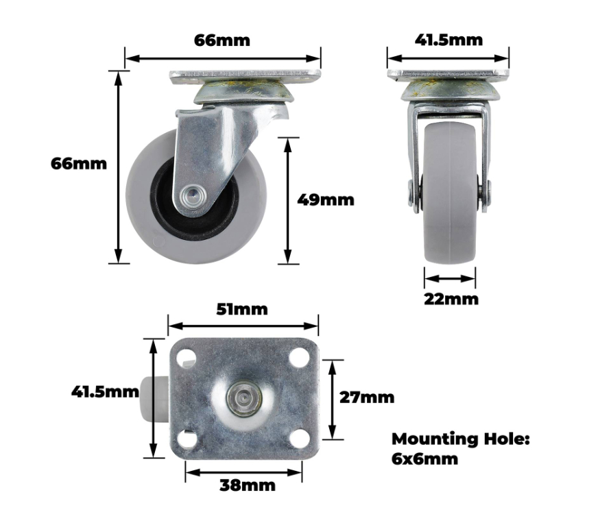 Castor Grey TPR Swiv/Plate 50mm is a practical mobility solution for DIY enthusiasts seeking reliable, smooth rolling performance. Engineered with a plain bearing and single raceway, this lightweight castor is ideal for furniture, equipment and workshop projects. Its TPR tyre provides excellent durability and resistance to abrasion, while the robust steel bearing ensures consistent load distribution. This unit offers precise movement and easy repositioning, perfect for a variety of technical and practical applications.Detailed