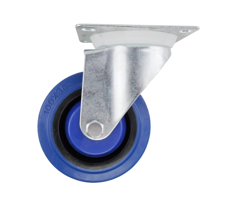 Castor Blue Elast Rub. Swiv/Plate 100mm