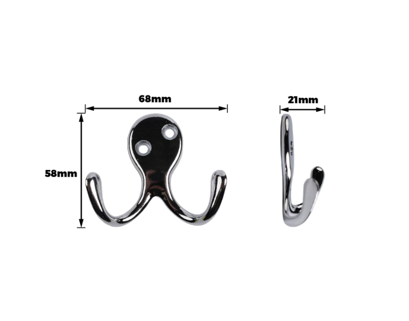 Double Robe Hook Chrome PK1 is a practical, dual-hook solution designed for secure garment storage. This double robe hook features a polished brass board and hook finish, providing a modern look with a robust design. Crafted from aluminium, it ensures durability and corrosion resistance for long-term use. Ideal for DIY enthusiasts, its straightforward installation makes it a valuable component for home improvement projects and organised entryways.Detailed
