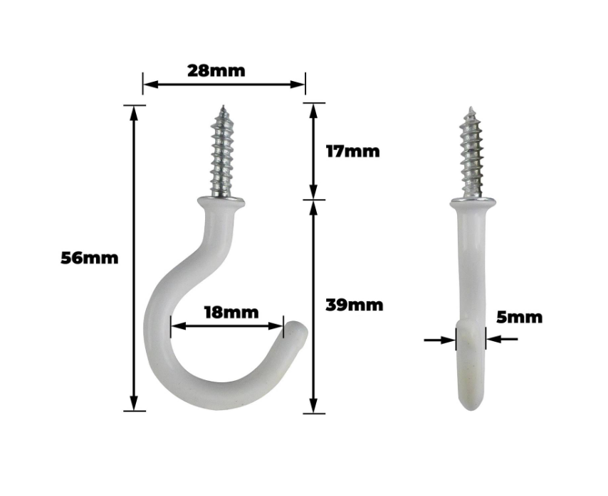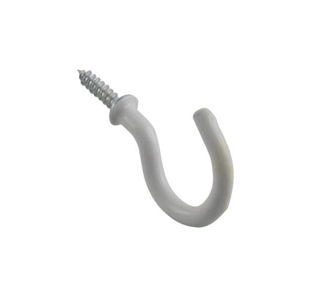 Cups Hooks Shouldered 38mm White PK6 is a set of six steel hooks designed for reliable hanging solutions within domestic and workshop settings. Engineered for DIY enthusiasts, these hooks offer a practical and robust option for securing items in storage, kitchens, or garages. Their white finish ensures easy integration into various décor styles, while the shouldered design enhances load distribution. Packaged in a durable yellow polybag for secure handling and transport, they deliver consistent performance in technical applications.Detailed