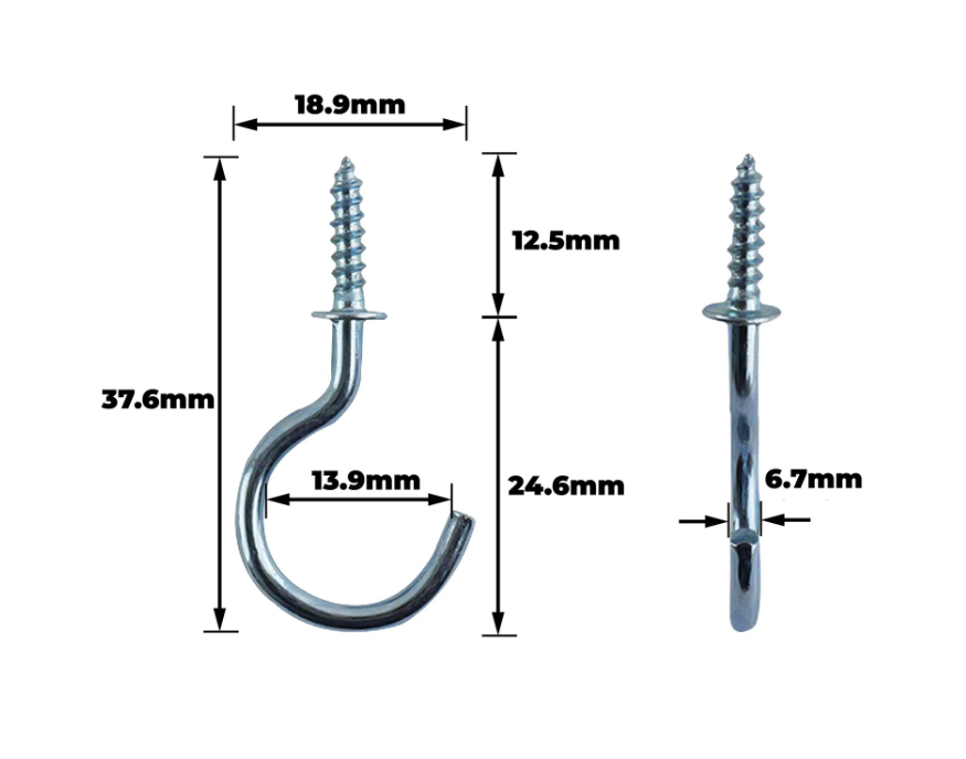 Cups Hooks Shouldered 25mm BZP PK20: These shouldered cup hooks are precision engineered for a range of DIY applications. Designed for secure installation in furniture, shelving, and decorative projects, they provide consistent performance with a reliable grip. The zinc-plated steel construction offers enhanced durability and corrosion resistance, ensuring longevity. Each unit is delivered in a pack of 20, making them a practical choice for both small-scale tasks and larger retail operations.Detailed
