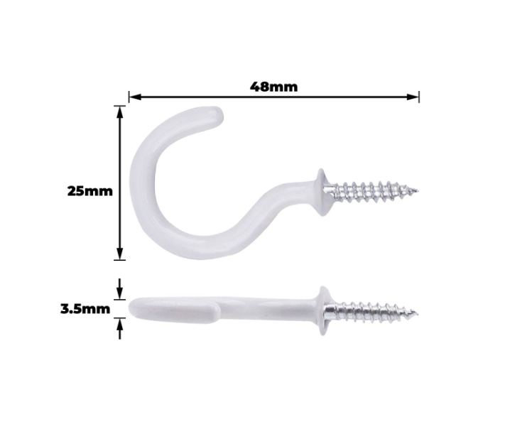Cups Hooks Shouldered 31mm White PK4 provide a practical solution for organising cups in domestic or commercial settings. Designed for straightforward mounting, these hooks support everyday DIY tasks such as kitchen or bar organising. The clean white finish blends with various decors while the 31mm shouldered design offers reliable stability. Packaged in a yellow polypropylene polybag, the set of four ensures consistent quality and easy storage.Detailed