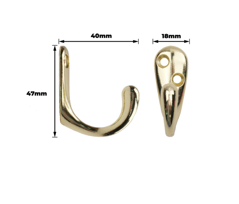 Robe Hook Brass Plated PK1 is a robust and efficient solution for hanging robes or towels in both domestic and commercial settings. This aluminium hook, finished in a brass plated look, delivers strength and longevity for DIY enthusiasts who value precise technical specifications. Its compact and straightforward design makes installation easy, while the durable construction ensures reliable performance for everyday use.Detailed