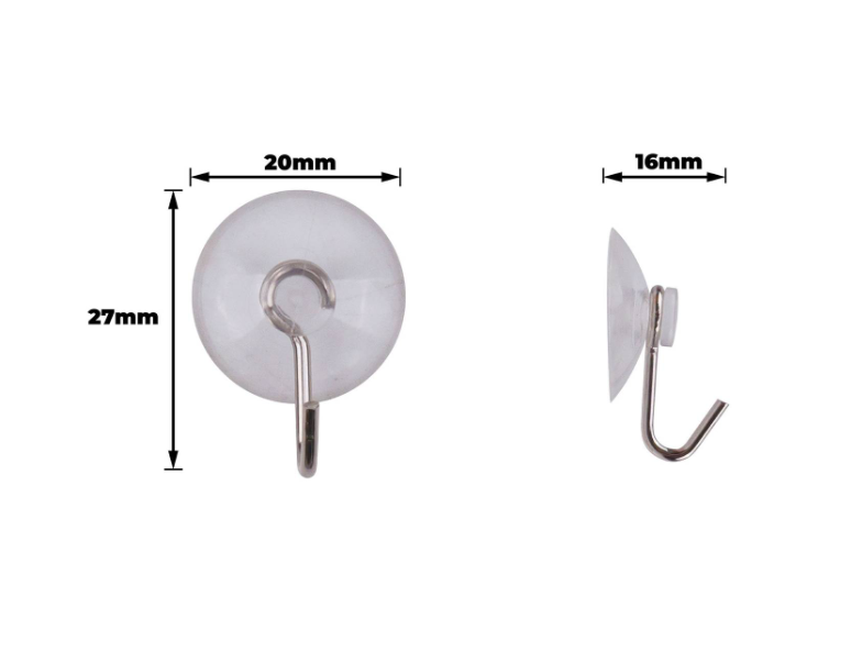 Suction Hooks - Wire Hanger 20mm PK4 offer a practical solution for hanging items in homes, workshops and retail settings. This set of four features robust suction technology that adheres securely to smooth surfaces. Designed for the DIY enthusiast, these hooks simplify tool organisation and provide versatile application. Their clear appearance and lightweight design ensure they blend unobtrusively with most decours, making them both functional and aesthetically pleasing.Detailed