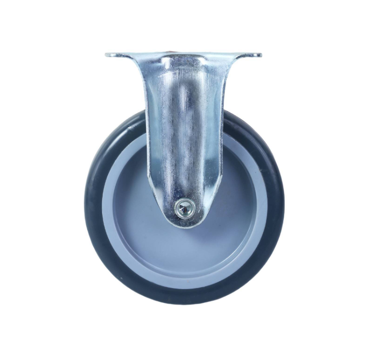 Grey PU fixed wheel 100mm, zinc plated top 77X67mm, 70kg
