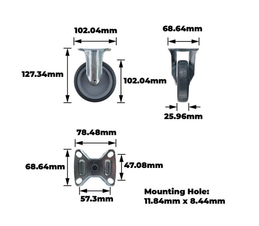 Grey PU fixed wheel caster with a zinc plated top is a robust solution for DIY projects requiring reliable mobility. This swivel caster is designed with a plain bearing and single raceway, ensuring smooth operation and ease of manoeuvring. Its 70kg load capacity makes it a valuable component for workshops or home-based machinery. The durable TPR wheel and steel housing offer longevity and stability, making this caster an ideal choice for cost-effective, practical solutions in various maintenance and upgrade tasks.Detailed