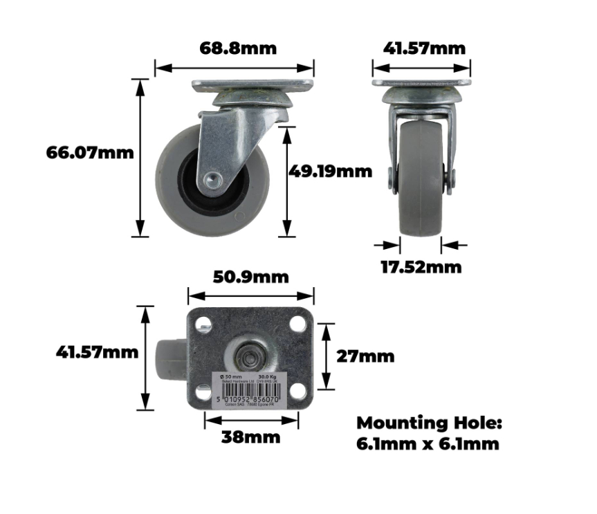 - Heavy Duty Swivel TPR 50mm, 40kg