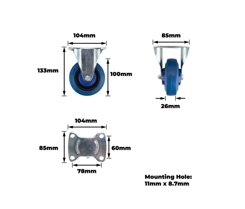 - Heavy Duty Castor Blue Rubber Rigid 100mm, 120kg