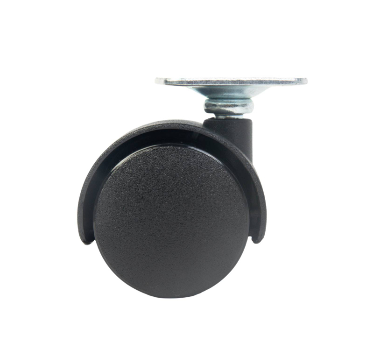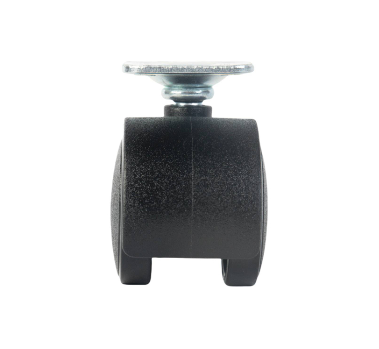 WC23010Black Polypropylene swivel twin wheels 50mm, top plate size:38x38mm, zinc alloy frame,chrome plated, 40kg -
