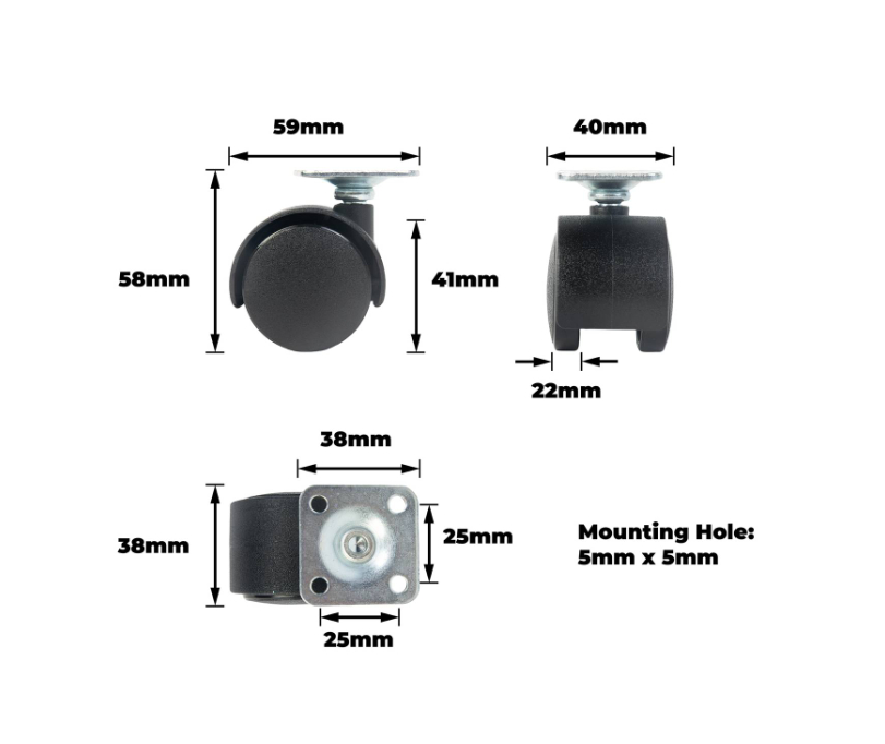 BLACK TWIN WHEEL CASTOR 40MM PLATE PK4