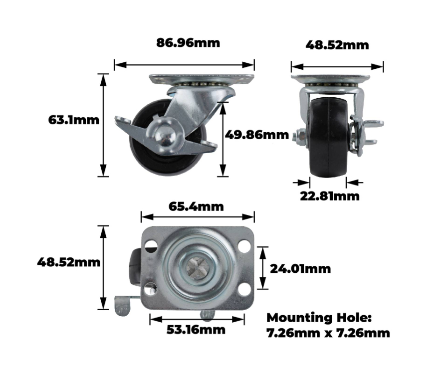 BLACK HEAVY DUTY SWIVEL CASTOR WITH BRAKE 51MM is engineered for robust performance in various industrial and DIY projects. This swivel castor, featuring plain bearings and a single raceway design, offers reliable manoeuvrability and secure braking. Its steel housing combined with a polypropylene wheel core delivers durability and precise load handling, making it invaluable for equipment that requires both mobility and stability. Ideal for DIY enthusiasts, it maximises practical applications with its technical advantages.Detailed