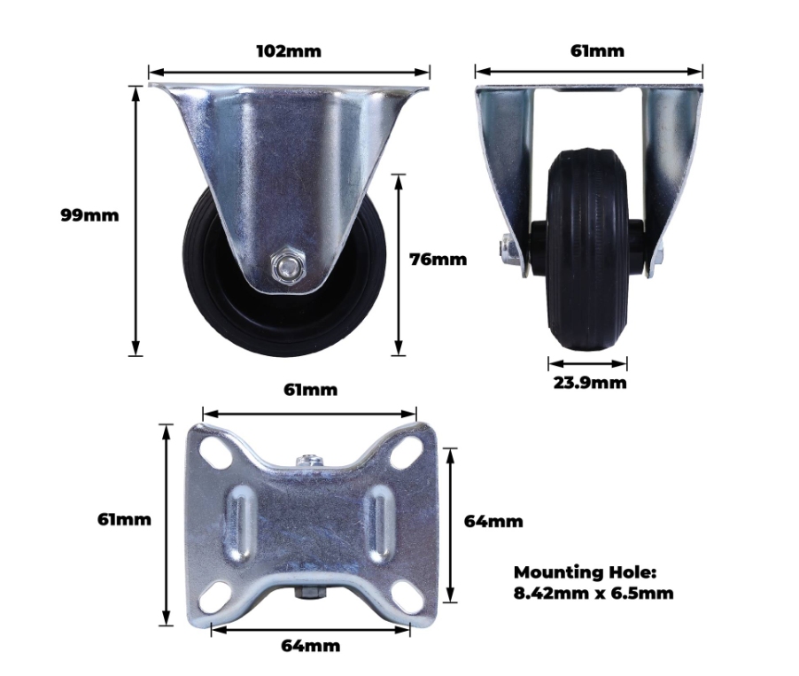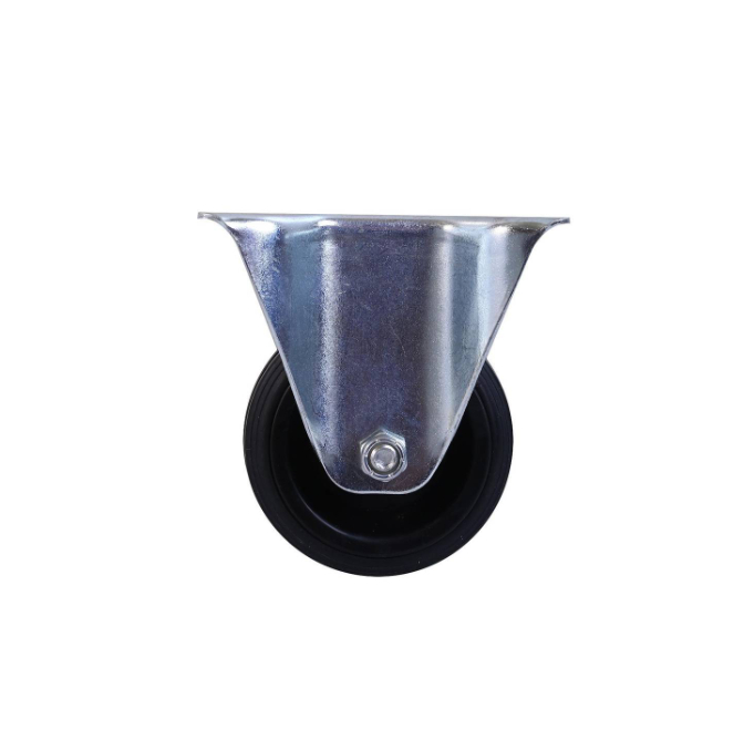 Key Features:- Engineered fixed wheel featuring a robust black rubber design with zinc plated top.