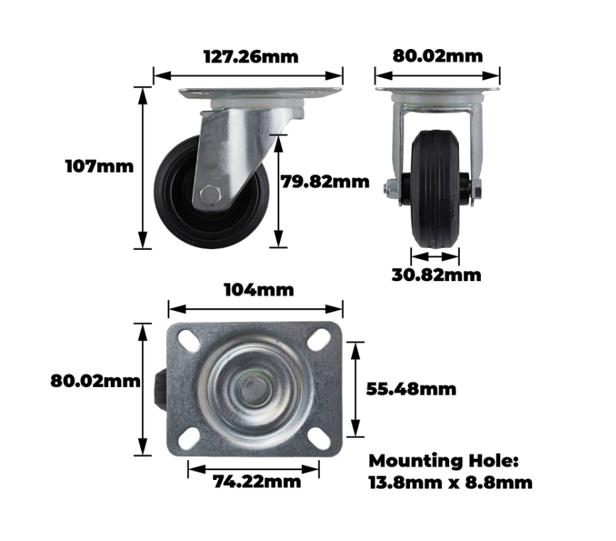 Key Features:- 80mm black rubber wheel delivers smooth and reliable rotation for demanding DIY projects.