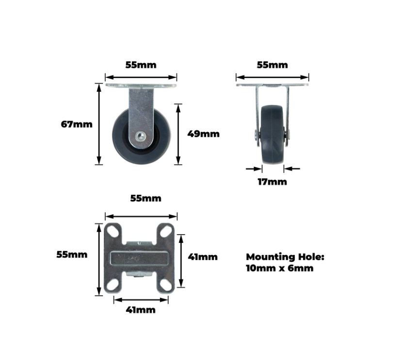 - Compact rigid castors ideal for DIY projects, delivering practical mobility and strength.