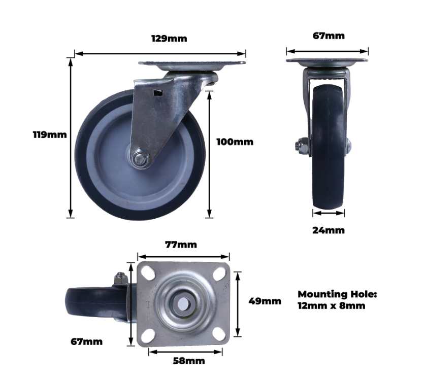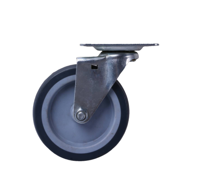 Grey PU swivel wheel 100mm, zinc plated top 77X67mm, 70kg