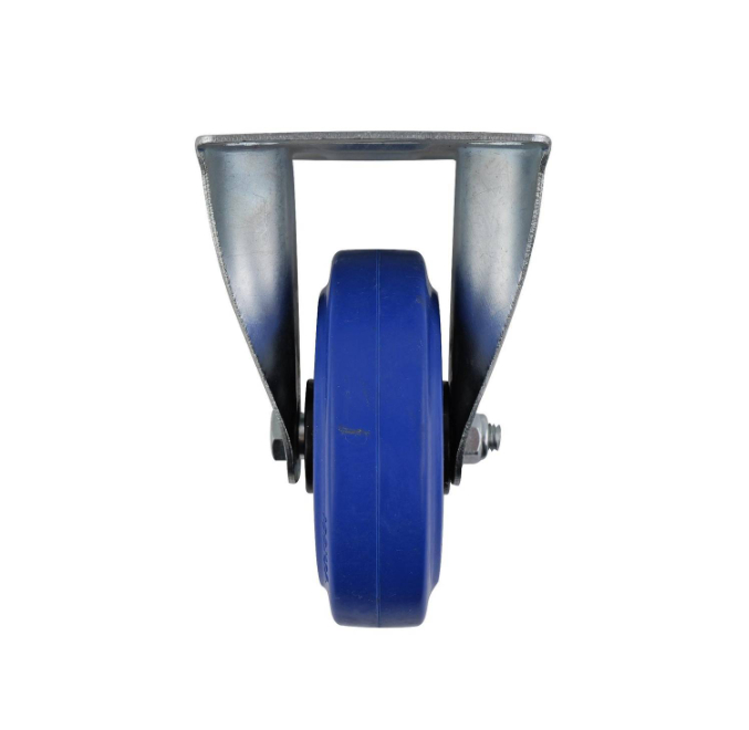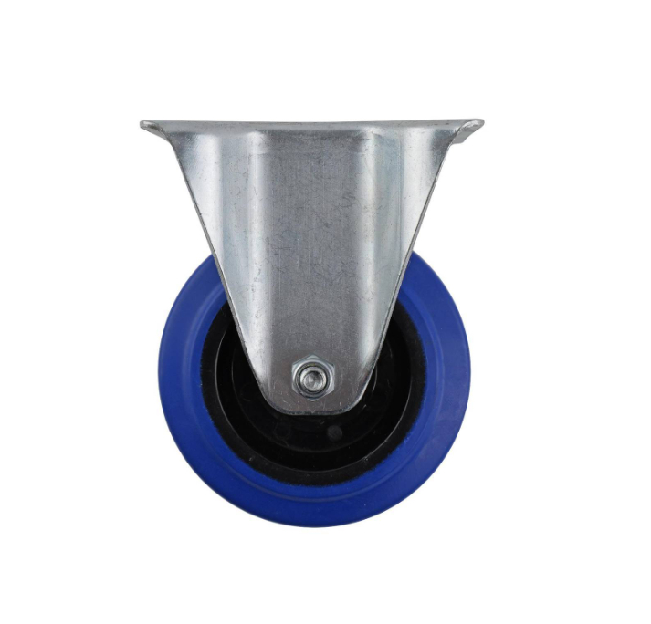 Blue elastic rubber fixed wheel 100mm with a zinc plated top is designed for use in DIY applications where precision and durability matter. This caster, featuring plain bearings and a single raceway type, is ideal for projects requiring robust movement and reliable load capacity. Its straightforward technical design and quality materials make it a practical choice for online and retail buyers who value clear specifications and ease of installation.Detailed