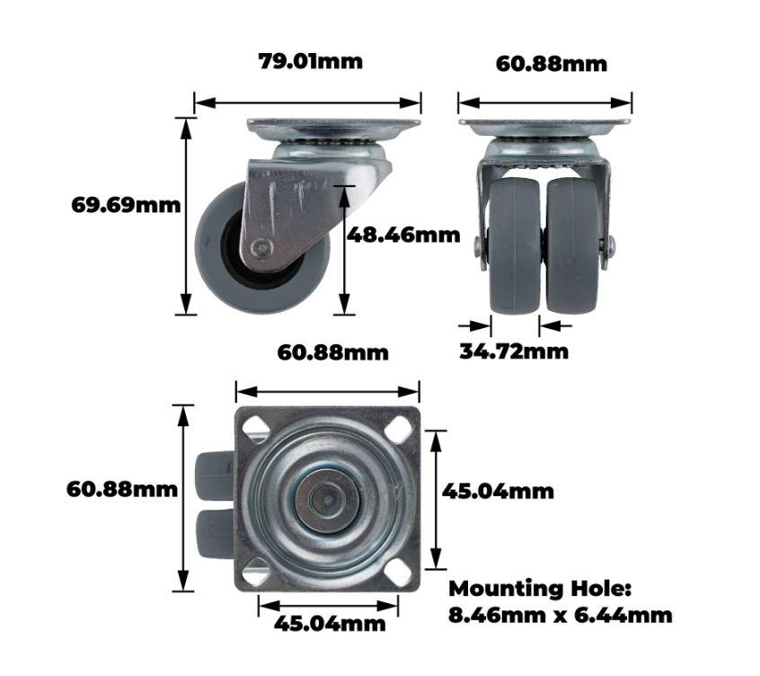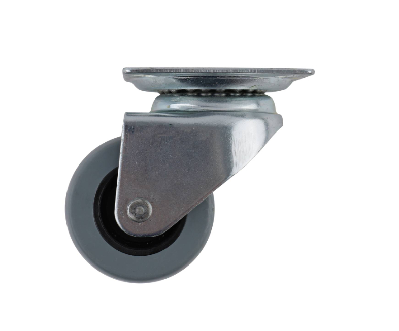 Grey rubber swivel wheel 50mm with a zinc plated top measuring 60x60mm and a 45kg load rating is engineered for reliable performance in DIY projects. This swivel caster is constructed with a nylon wheel core and durable rubber tyre, housed in robust steel with steel bearings. Its plain bearing design and dual raceway ensure smooth movement under a maximum load of 40kgs, making it ideal for retail and online buyers who require practical, technical specifications for robust application.Detailed