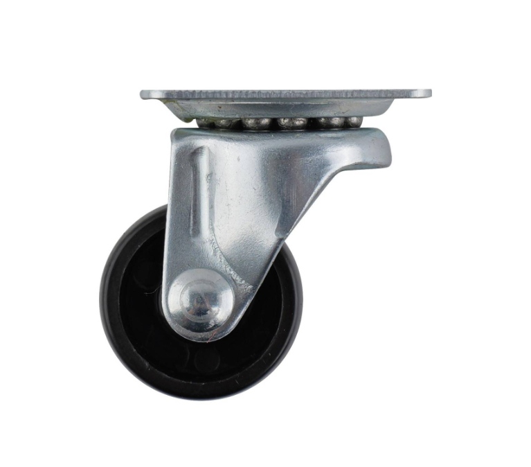Black Polypropylene swivel wheel 25mm, top plate 35X30mm, single raceway, zinc plated, 10kg