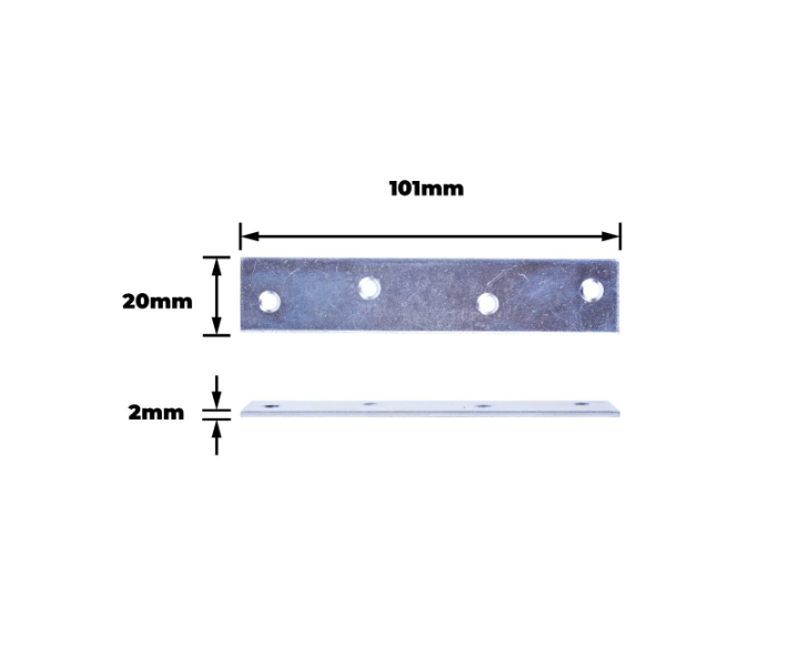 Repair Plate - 100MM ZP is a robust steel repair plate designed for precision fixes in a variety of DIY applications. The rectangle shape and zinc-plated finish ensure enhanced corrosion resistance and reliable performance in structural repairs. Ideal for DIY enthusiasts and hobbyists needing technically sound components, this repair plate provides excellent durability and ease of installation. Pack includes two repair plates securely packaged in a polypropylene polybag.Detailed