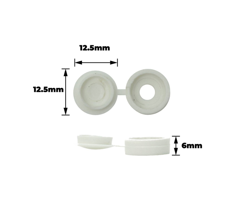 SCRW CUPS AND CAPS WHT offer a reliable fold-over plastic screw cap solution designed for practical DIY projects. Made from durable polypropylene, these white, round caps ensure secure, neat closure for repairs, packaging, and cabinetry applications. Ideal for retail and online buyers with technical knowledge, they combine strength with simplicity. With consistent performance and easy installation, these screw caps deliver an effective and efficient alternative to traditional fastening methods in a variety of settings.Detailed