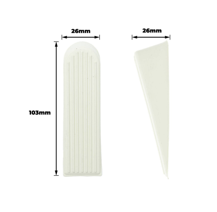 Door Wedges White are sturdy wall mounted wedges designed for securing doors during repairs and renovations. Made from durable rubber and carefully packaged in a polypropylene polybag, these lightweight, 25-gram wedges provide reliable stability and efficient door support. Ideal for DIY enthusiasts, they offer practical solutions for both temporary and long-term door positioning without the need for additional fasteners.Detailed