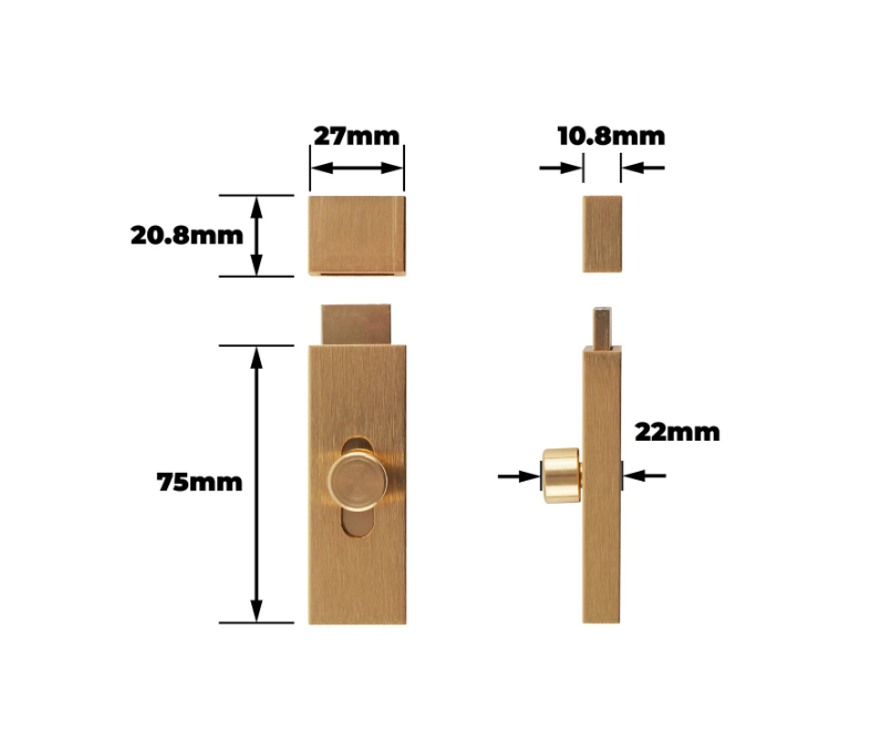 Modern Wide Door Bolt 75mm Brushed Brass PK1 is a high-quality door bolt designed for secure door mounting in residential and commercial applications. It features a brushed brass finish paired with a robust combination of aluminium alloy and steel. The product is engineered to meet the practical needs of DIY enthusiasts, offering both durability and precision. Its efficient design ensures a straightforward installation process, making it a reliable choice for craftsmanship and regular maintenance.Detailed
