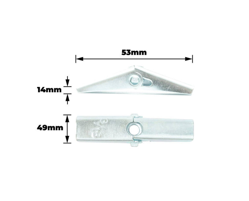 SPRG TOGGLES M5X50MM offers a reliable spring toggle fixing designed for plasterboard applications. Manufactured from durable polypropylene and featuring a special shape, this fixing is engineered for secure installation in modern DIY projects. Its design ensures straightforward handling and dependable performance for renovations, repairs, and new constructions. Ideal for both residential and commercial applications, it provides a practical and efficient solution for the savvy DIY enthusiast.Detailed