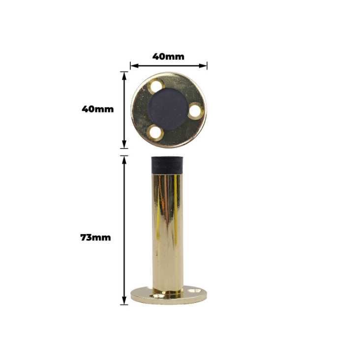 Door Stop Projection Flanged Polished Brass 75mm offers a practical solution for controlling door movement and preventing wall damage. Constructed with high-grade steel and rubber, its polished brass finish provides durability and an attractive appearance. Designed for both residential and commercial settings, this door stop is ideal for DIY enthusiasts who value ease of installation and robust performance in everyday environments.Detailed