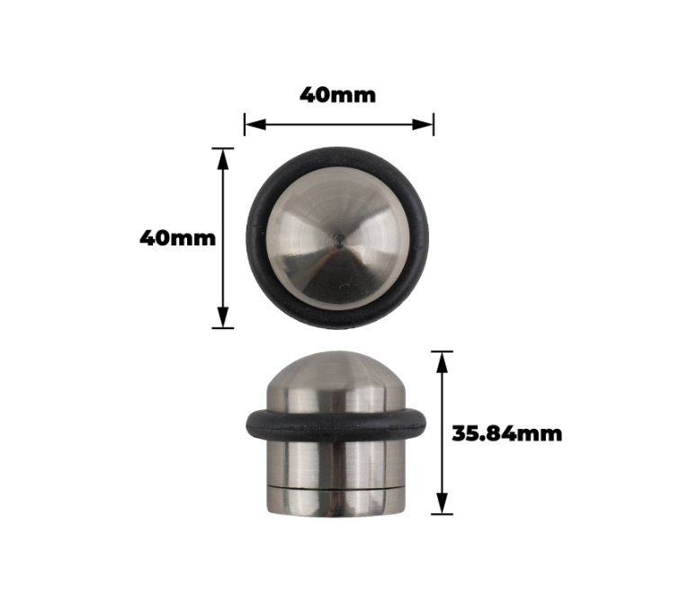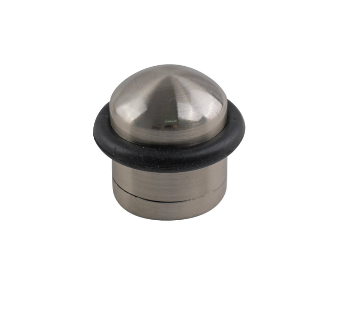 DOORSTOP DOME SN – This floor‐mounted doorstop features a robust clamshell design crafted from zinc alloy and rubber. Its satin nickel and black finish provides both an elegant appearance and durable functionality. Engineered for DIY enthusiasts, this lightweight hardware solution offers a simple yet effective method to keep doors safely controlled in both residential and commercial settings. Designed for secure, long‐term performance, it simplifies installation and maintenance.