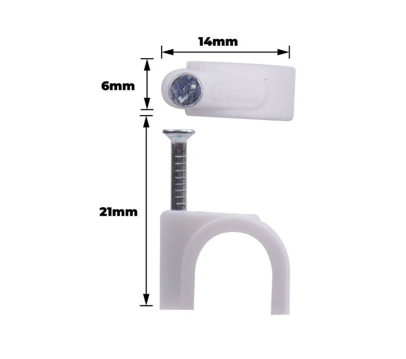 Cable Clips, Round 9-11mm White PK20 offer a practical cable management solution for DIY projects. Manufactured from polypropylene and steel, these clips provide reliable support for organising cables in domestic, workshop and commercial environments. Their discreet white finish blends with various settings and ensures neat, secure wiring channels. Lightweight and supplied in packs of 20, they deliver both simplicity and durability for efficient cable routing and maintenance.Detailed