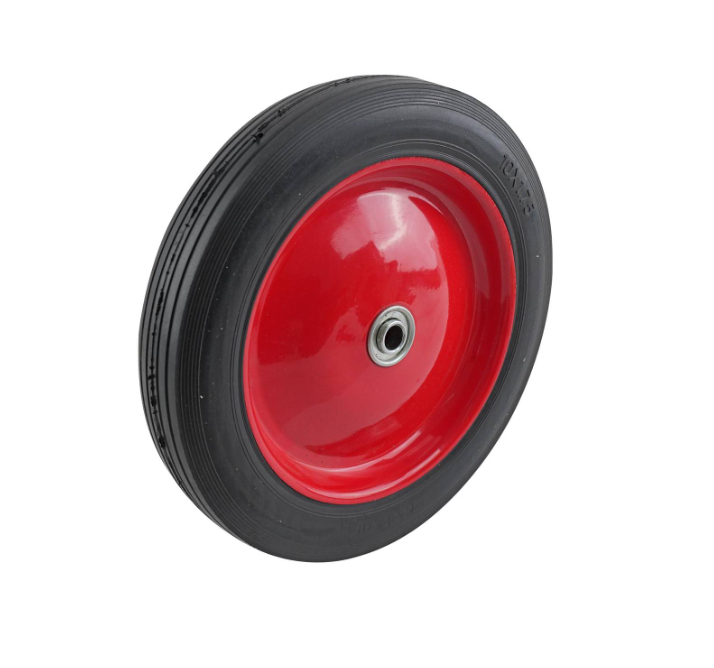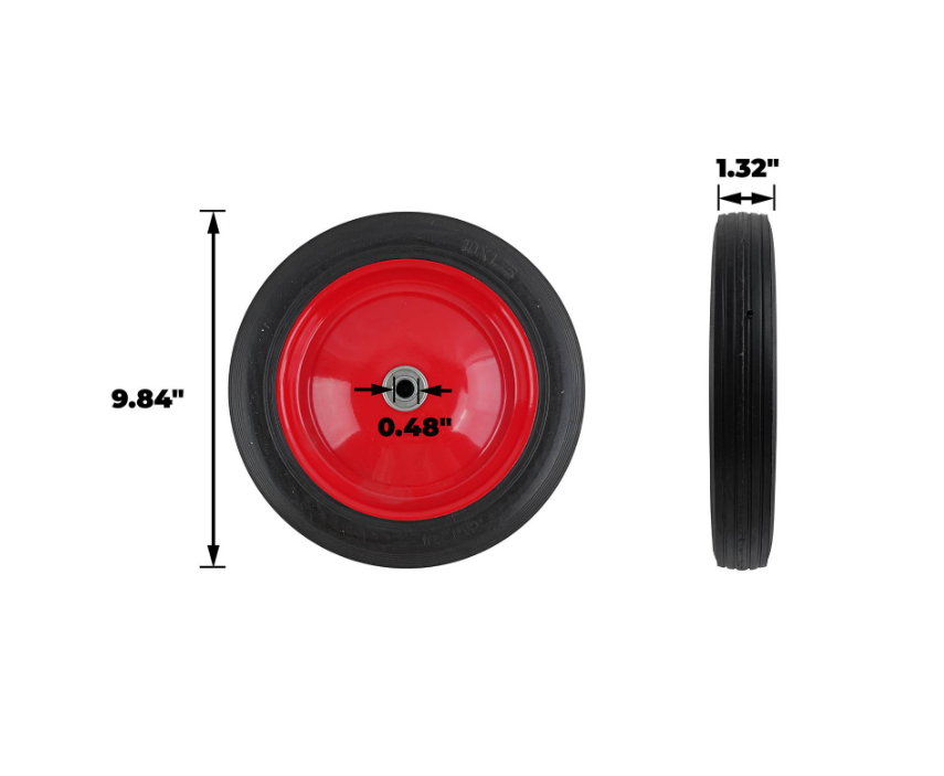 10-Inch Semi-Pneumatic Rubber Tire, Steel Hub with Ball Bearings, Ribbed Tread, 1/2-Inch Bore Centered Axle