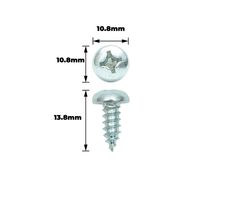 - Pack of 10 screws securely packaged in a red polypropylene polybag.