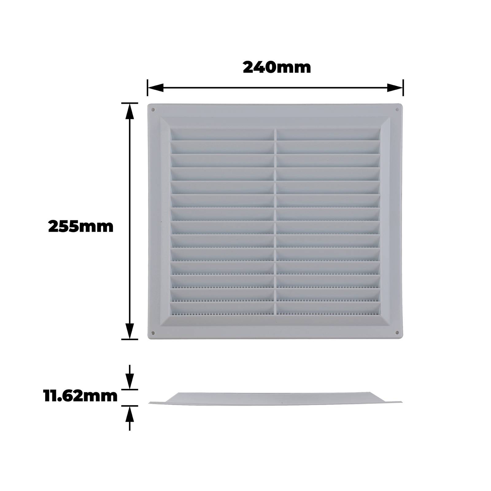 - Integrated flyscreen and louvred design effectively deter insects while maintaining air flow.