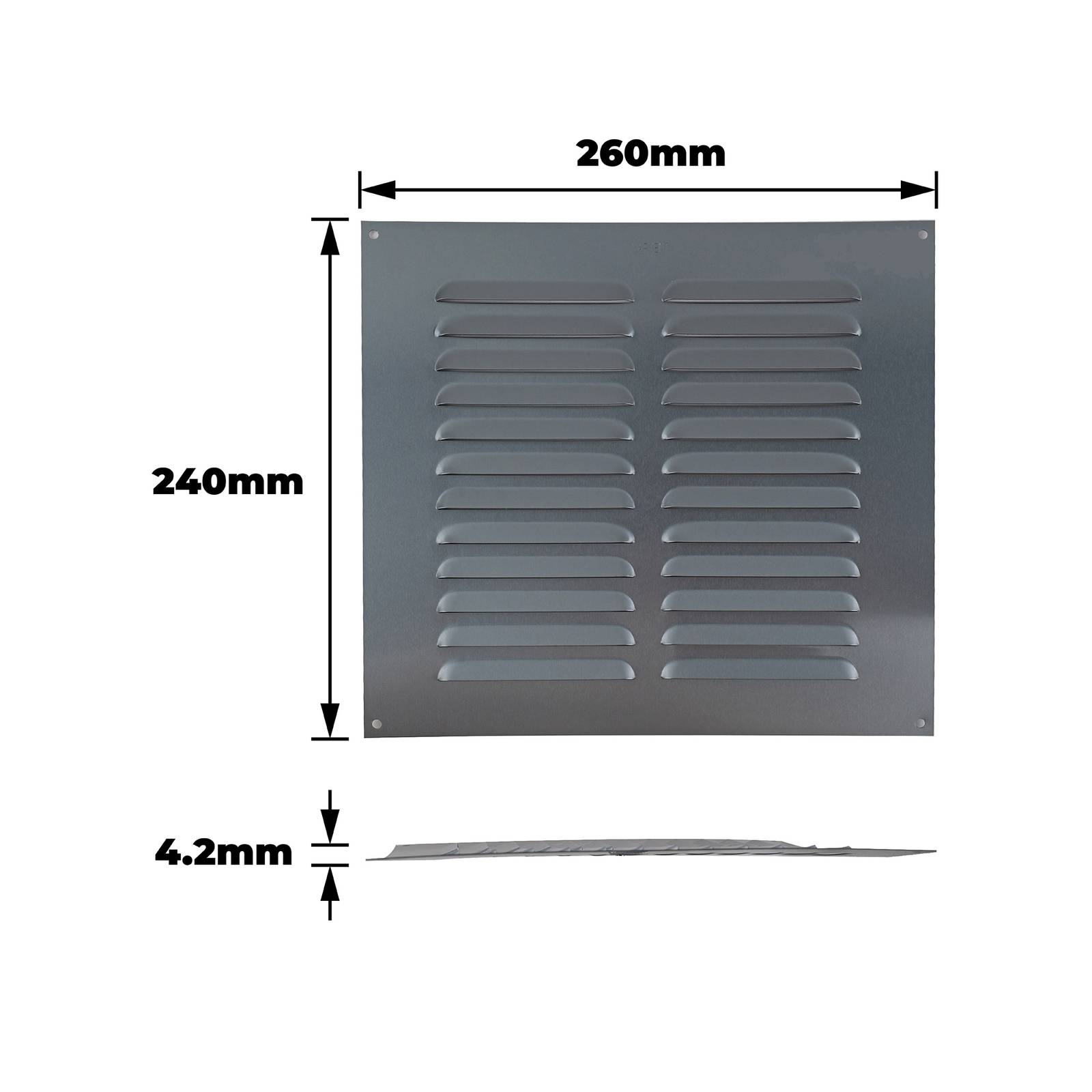 The SELECT HARDWARE Louvred Aluminium Vent is a robust 9x9 inch component designed for effective ventilation in various applications. Made from durable anthracite aluminium, it offers a reliable solution for DIY enthusiasts seeking to improve airflow in attics, basements, or utility rooms. Its sleek design not only enhances aesthetics but also ensures longevity and minimal maintenance, making it an ideal choice for both residential and commercial projects.Detailed
