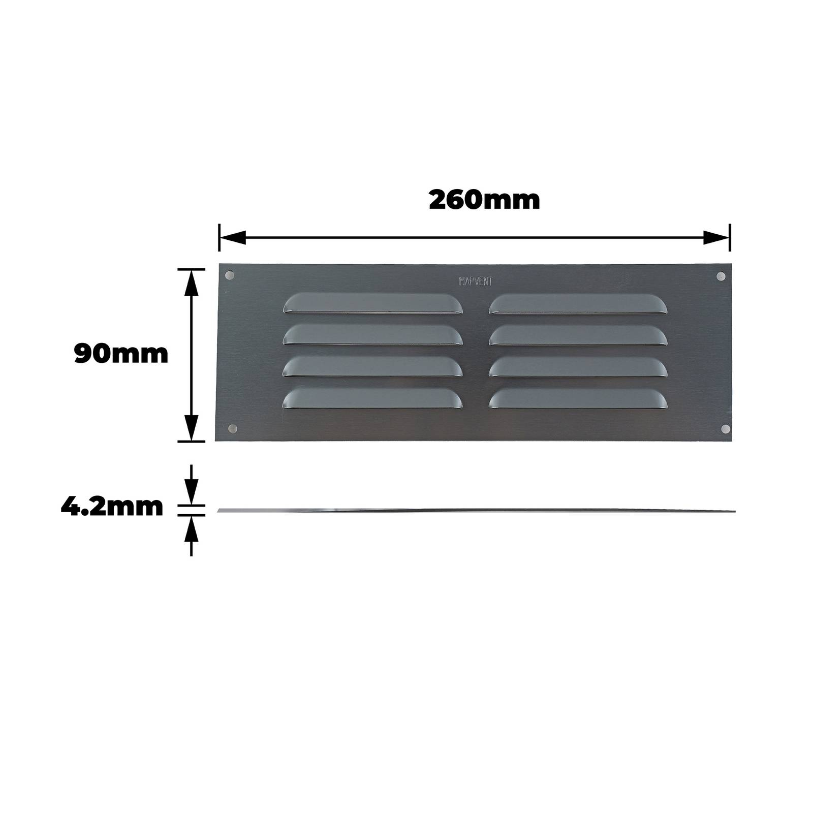 The SELECT HARDWARE Louvred Aluminium Vent is a practical solution for enhancing ventilation in residential and commercial spaces. Designed in a sleek anthracite finish, this 9x3-inch rectangular vent combines functionality with aesthetics, making it ideal for DIY enthusiasts looking to improve airflow without compromising on style. Constructed from durable aluminium, it provides long-lasting performance while maintaining ease of installation for various applications.Detailed