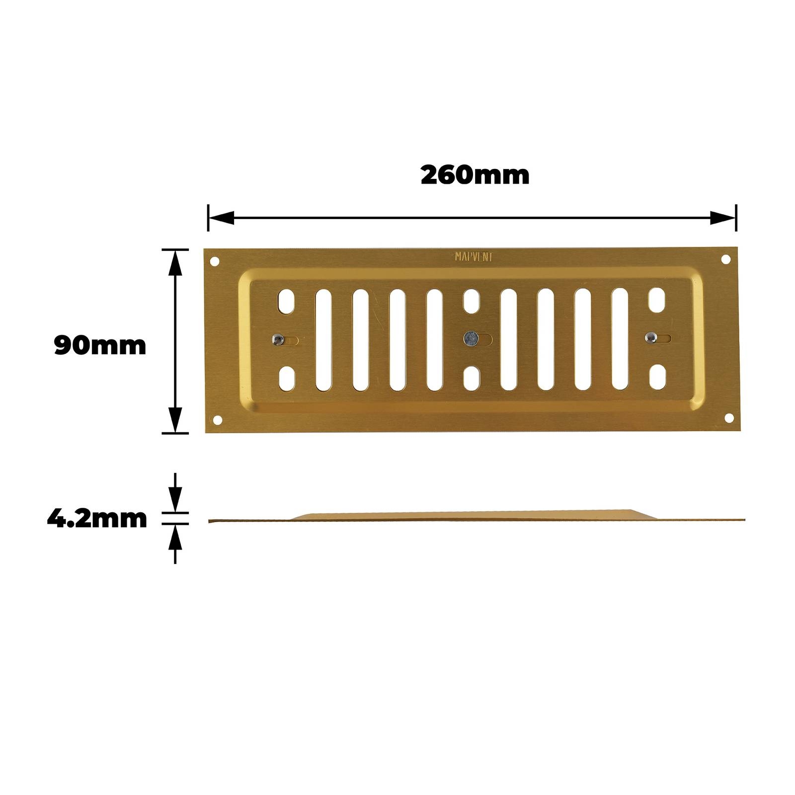SELECT HARDWARE Vent - Adjustable Aluminium 9x3" Gold is a precision-engineered adjustable vent designed for effective airflow control in both residential and commercial settings. Constructed from high-quality aluminium with a striking gold finish, this rectangular vent is ideal for DIY enthusiasts seeking reliable performance and efficient ventilation. Its robust design and straightforward installation make it a practical choice for applications that require customisable ventilation solutions.Detailed