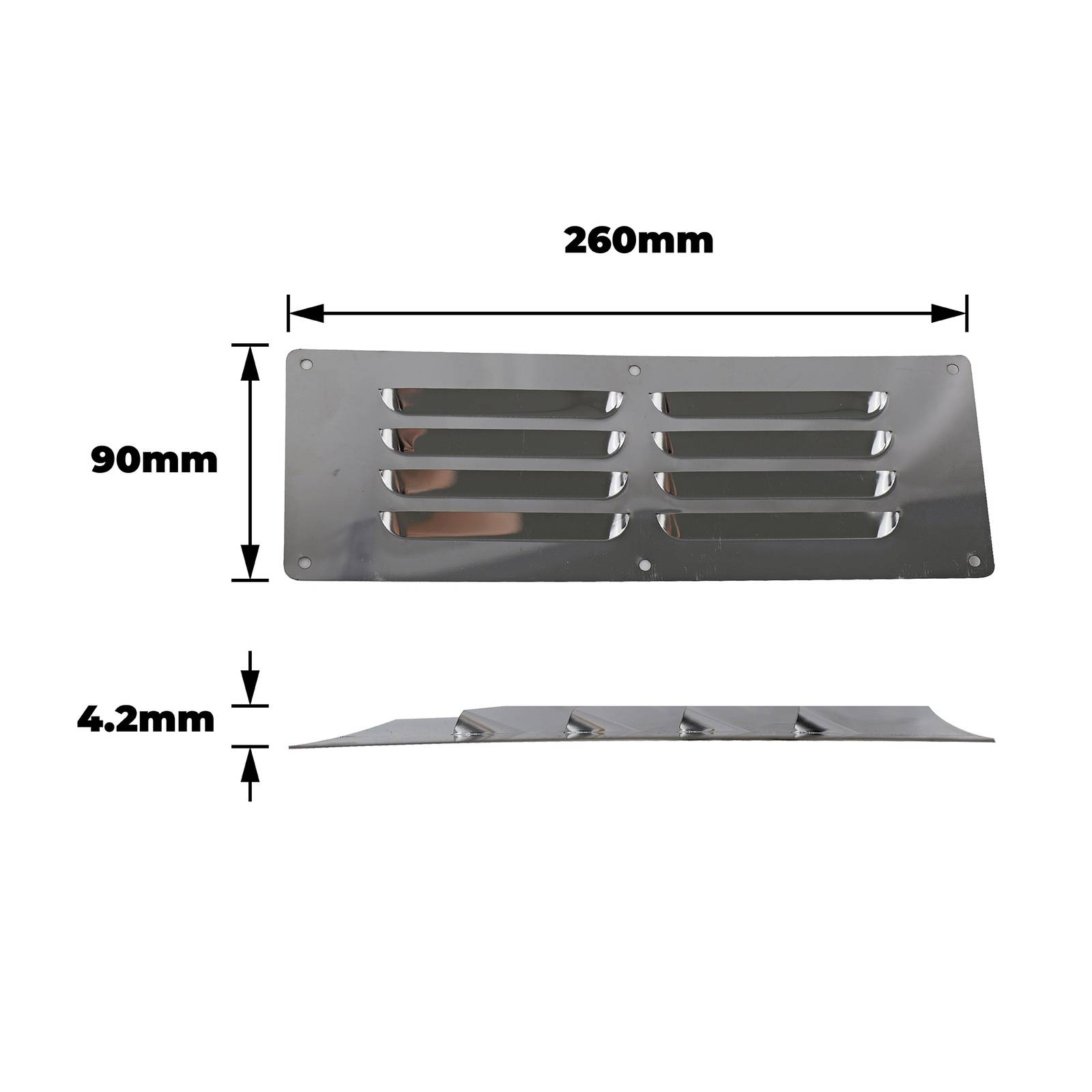 SELECT HARDWARE Vent - Louvred Stainless Steel 9x3" Chrome is a robust and efficient louvre vent designed to provide optimal air circulation. Crafted from quality stainless steel with a chrome finish, it offers a practical solution for ventilation in both residential and commercial DIY projects. Its rectangular shape suits various installations, ensuring ease of mounting and reliability. Ideal for enthusiasts who value straightforward, technically sound products tailored for effective airflow management.Detailed