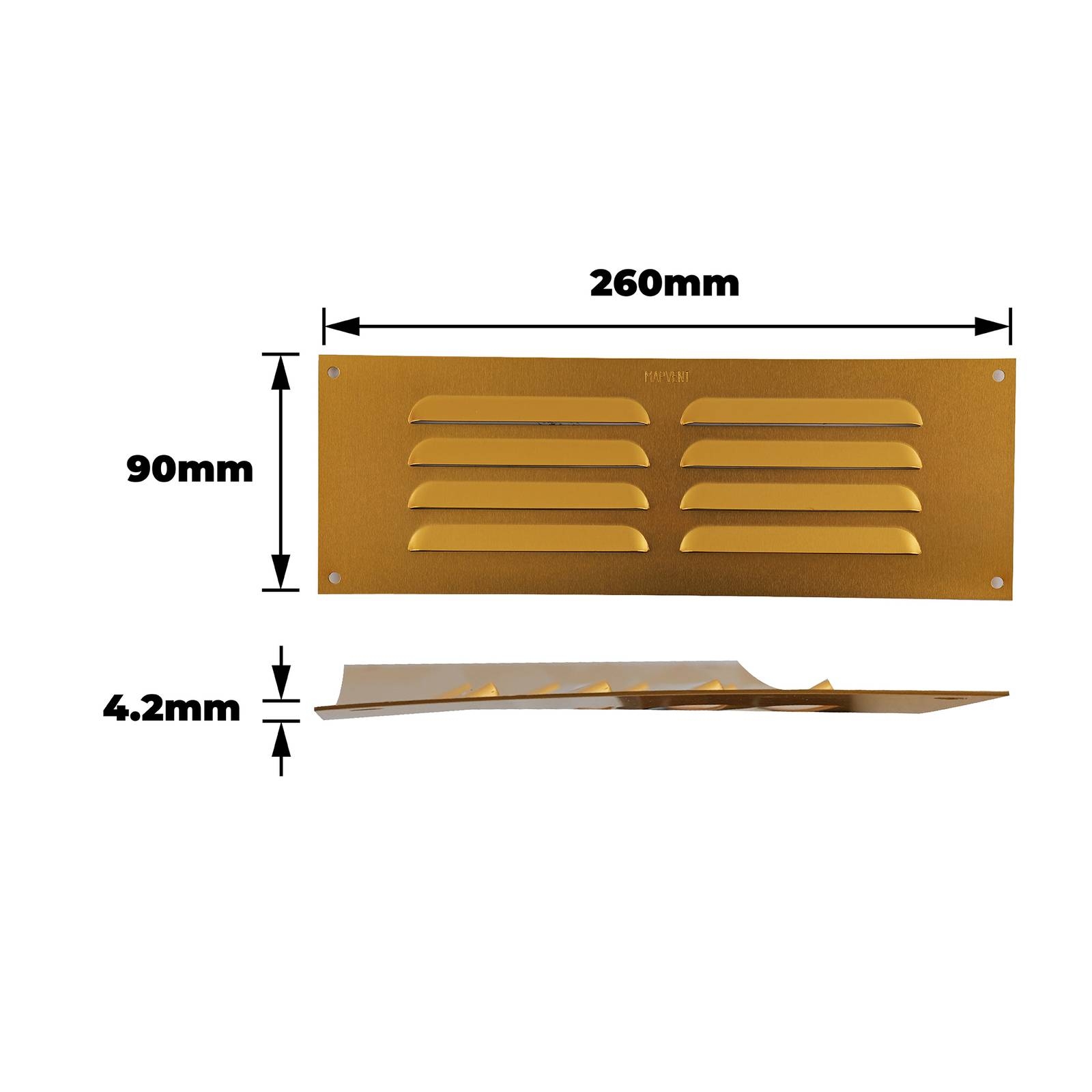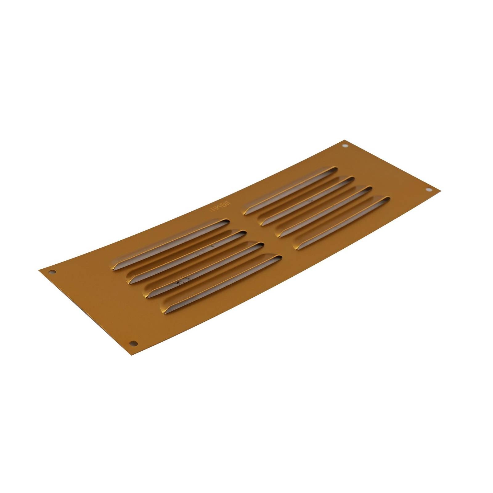 SELECT HARDWARE Vent - Louvred Aluminium 9x3" Gold is a precision-engineered louvre vent designed for effective ventilation in various DIY applications. Constructed from robust aluminium with a stylish gold finish, this rectangle vent is ideal for installations requiring regulated airflow and durability. Its lightweight design, weighing only 38 grams, ensures easy handling and efficient mounting. The product comes safely packaged in a PE polybag, making it a practical choice for both retail and online buyers.Detailed
