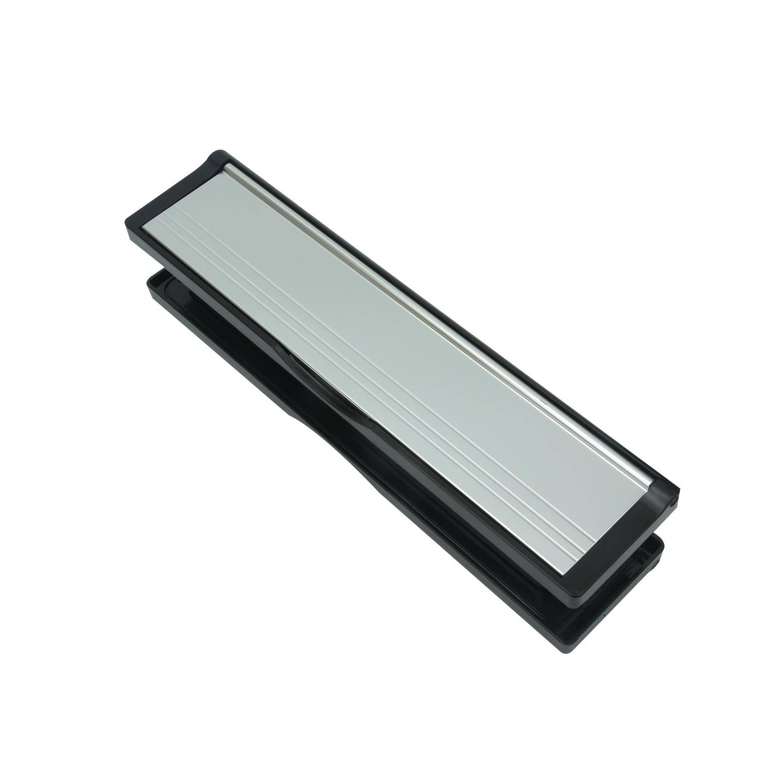 POST PORT 12" L/PLATE is a practical mail slot designed for secure and efficient mail delivery. Ideal for DIY enthusiasts, this rectangle-shaped item features a robust black and silvery finish that withstands various weather conditions. Its straightforward design ensures easy installation, making it a valuable choice for both residential and commercial projects. The product comes secured in a polybag, ensuring safety during transit and handling, which further aids in simplifying the installation process.Detailed