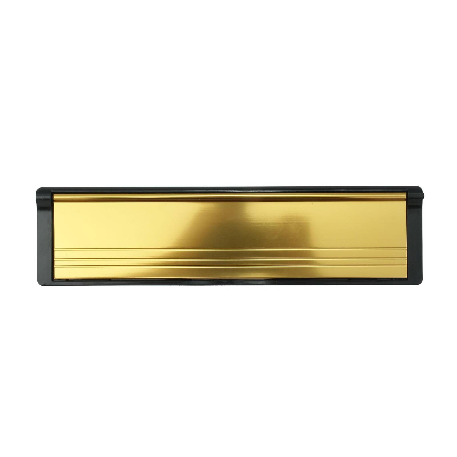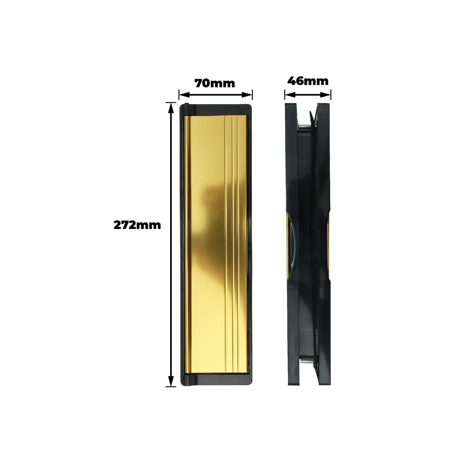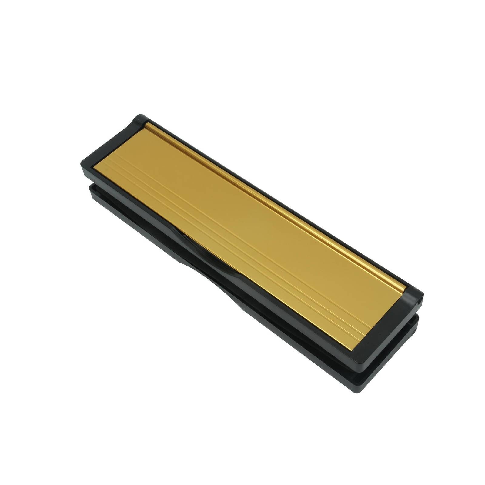 POST PORT 10" L/PLATE is a functional mail slot designed for secure mail delivery and ease of installation. This rectangular plate features a distinctive black and brass finish, offering both durability and an attractive appearance. Its lightweight design makes it an ideal choice for DIY enthusiasts who value straightforward, practical applications. The product is suitable for residential and light commercial use, providing reliable performance and an easy-to-install solution for everyday mail management.Detailed