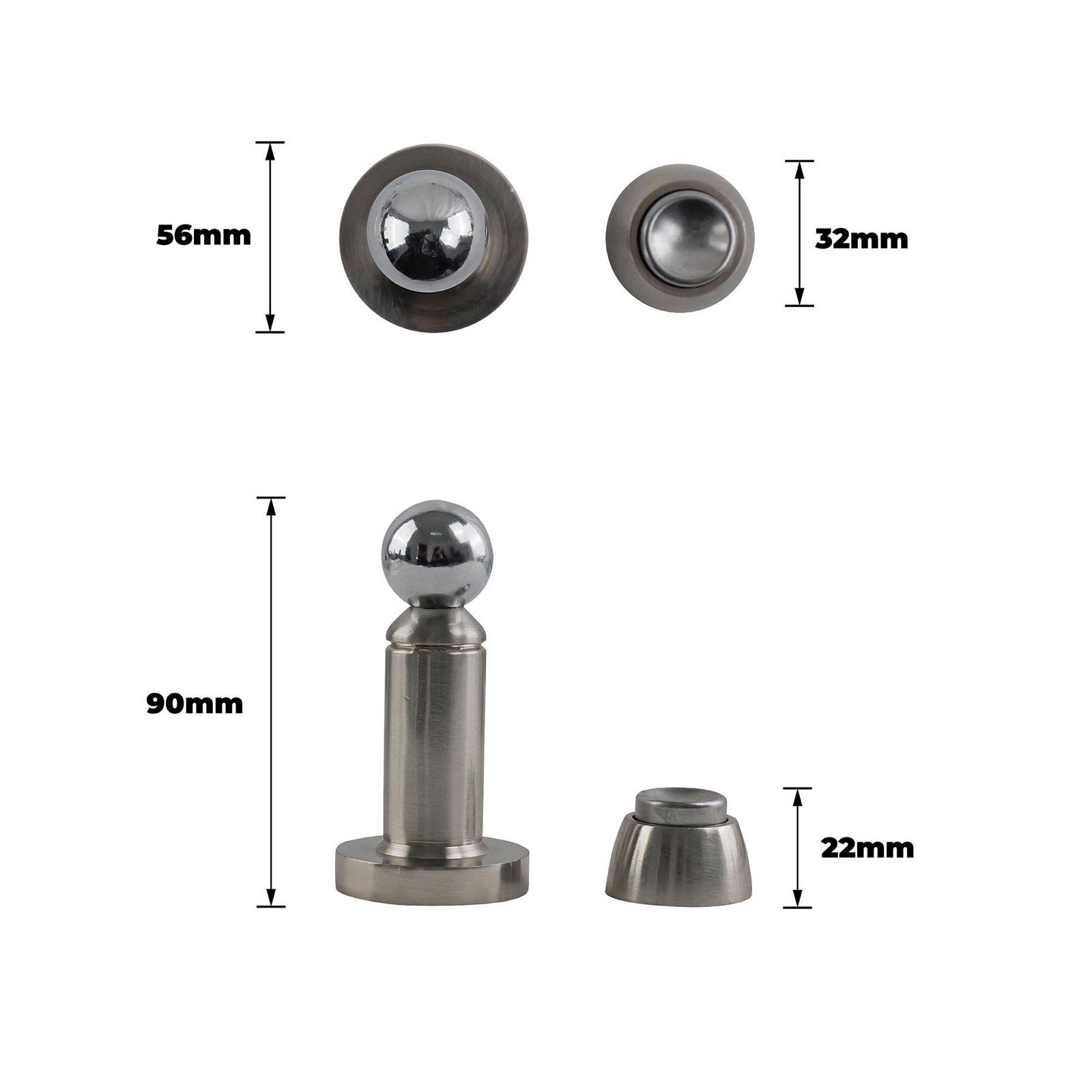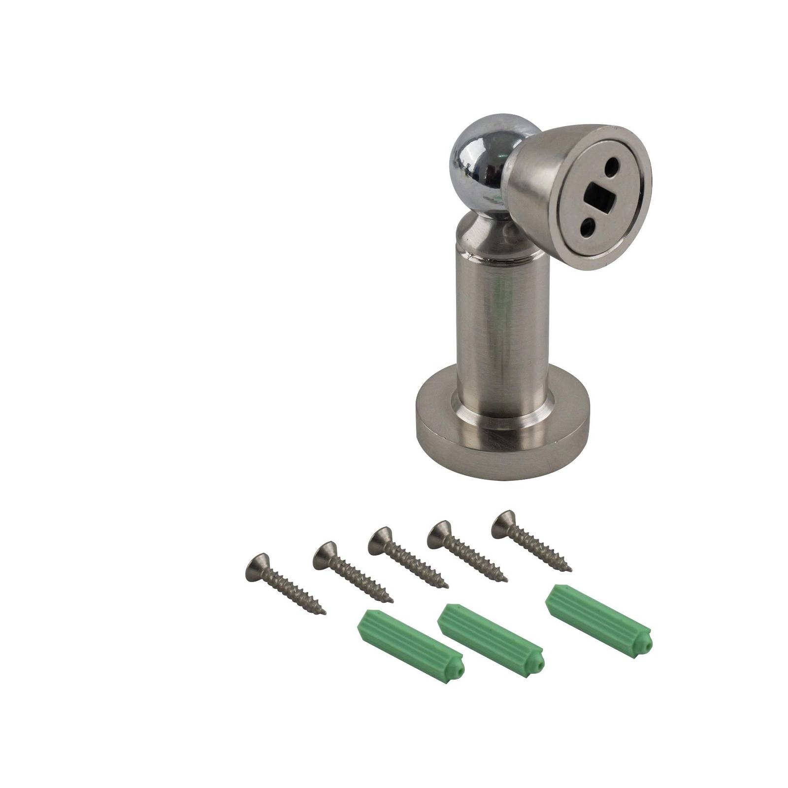 The HDEL023 Sphere Magnet Satin Chrome is a durable door stop designed for floor mounting, providing reliable support and preventing damage to walls and doors. Made from a combination of zinc alloy, steel, and stainless steel, this door stop ensures longevity and stability. Its sleek black and silver finish adds a modern touch, making it both practical and aesthetically pleasing for any DIY enthusiast.Detailed