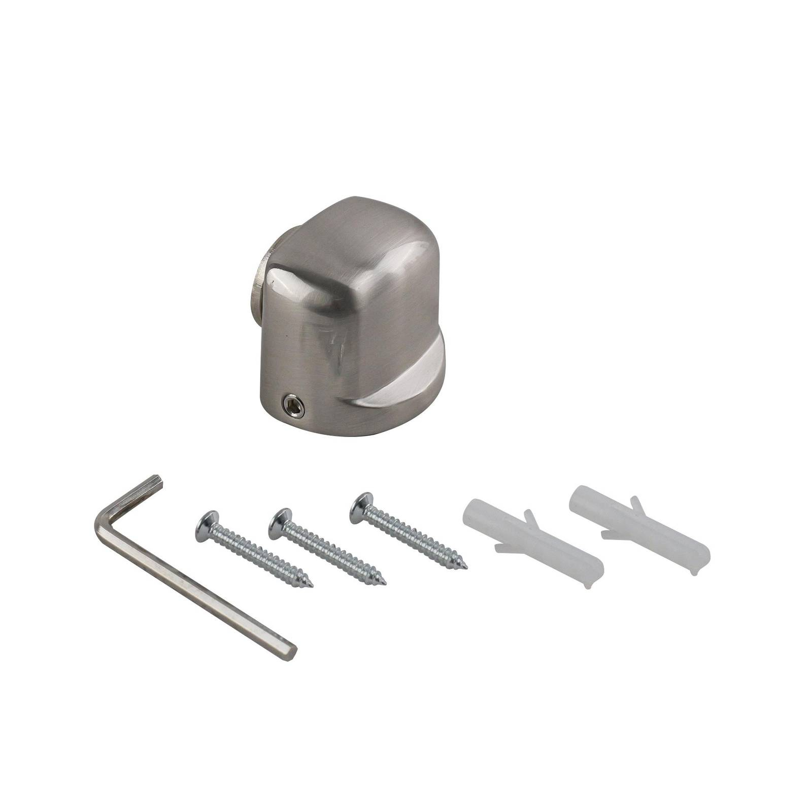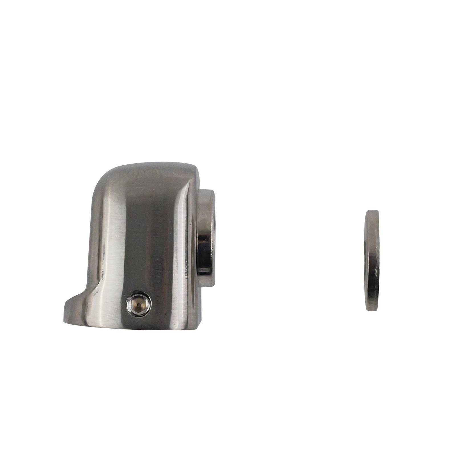 The ADOORED HDEH007 Half Moon Magnet Satin Chrome door stop is a sturdy and practical solution for DIY enthusiasts. Designed for floor mounting, this door stop prevents damage to walls and doors while providing an elegant touch with its sleek black and silver finish. Made from high-quality zinc alloy and steel, this product ensures durability and reliability for everyday use.Detailed