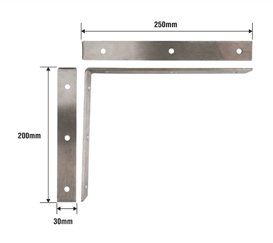 Carinya by RCR bracket angle is a light duty support component designed for DIY structural projects. Crafted from brushed stainless steel grade 304, this bracket reliably holds up to 50 kg and is engineered for precise installations. Its dimensions of 200 x 250 x 30 x 5mm make it ideally suited to a range of minor repair and building applications. This robust component delivers dependable performance for retail and online DIY enthusiasts.Detailed