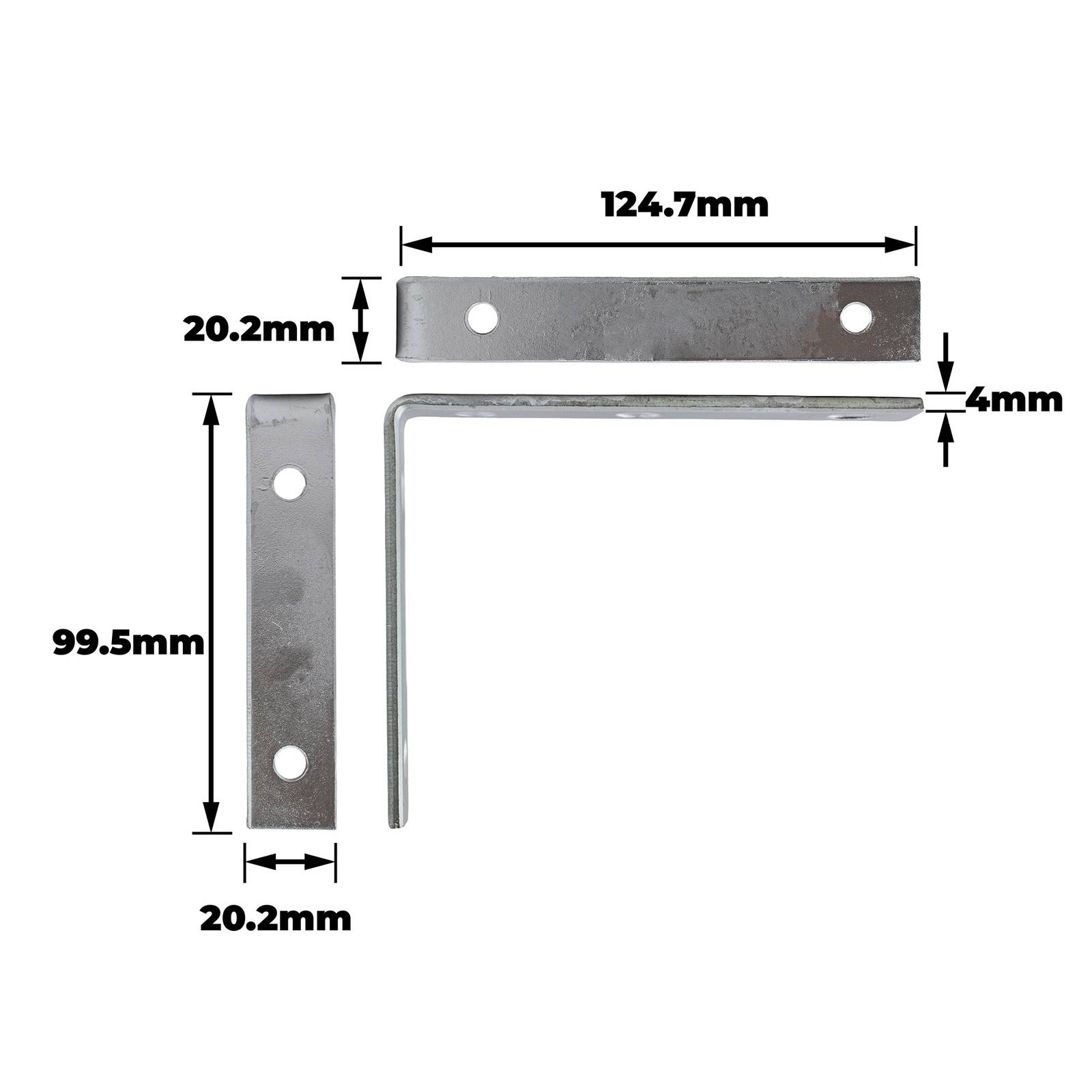 ANGLE BRACKET - ZINC PLATED 125x100x20x4mm is a robust angle bracket designed for demanding DIY projects. Constructed from steel with a zinc-plated finish, this bracket offers both strength and corrosion resistance for various applications. Its reliable load capacity of 75 kgs makes it ideal for budget-conscious builders and home improvement enthusiasts requiring dependable support in structures. Its precise dimensions and lightweight 117g design facilitate ease of installation and effective structural reinforcement.Detailed