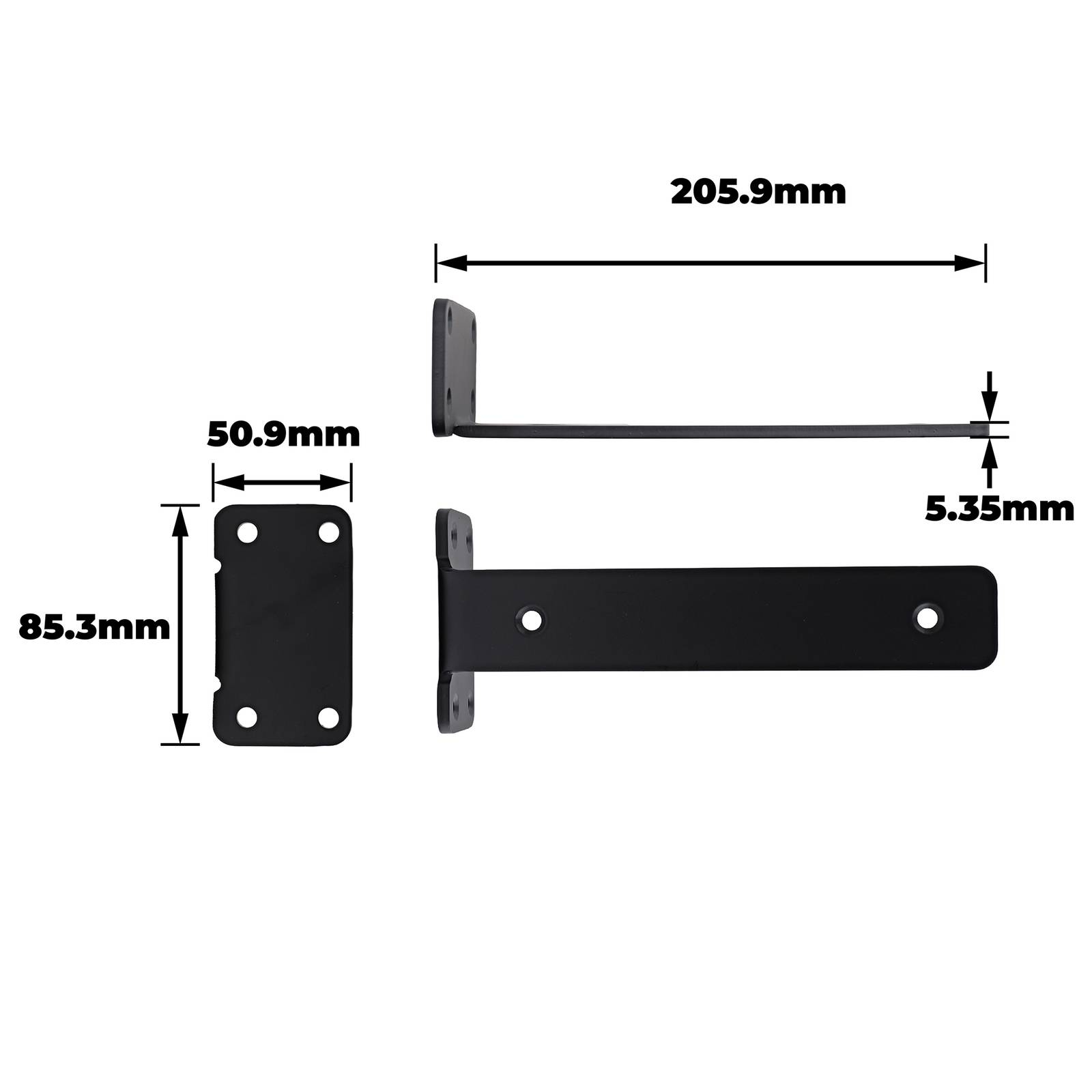 Carinya by RCR Heavy Duty Floating Shelf Bracket Small L205x W85 x T5mm 50KG offers a robust support solution ideal for DIY enthusiasts. Designed for floating shelves and small-scale installations, the bracket features a 50kg load capacity and a sleek matte black finish. Its compact design is engineered to deliver reliable performance while ensuring ease of installation in residential or workshop projects. This heavy-duty bracket is a practical choice for those requiring secure and enduring shelf mounting.Detailed