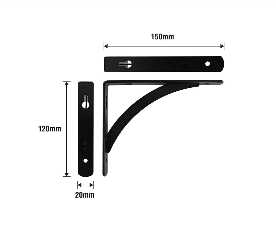 Carinya by RCR BRACKET ARCH STAYED CARINYA++150X120X20X3MM SAT BLK B00205This arch stayed bracket is engineered for DIY enthusiasts seeking reliable, compact structural support. Designed for secure mounting installations, it is capable of handling loads up to 85 kgs. Constructed from durable steel with a sleek black finish, it is ideal for custom projects and architectural adjustments. Its precise dimensions and robust build offer practical technical benefits for both retail and online DIY applications.