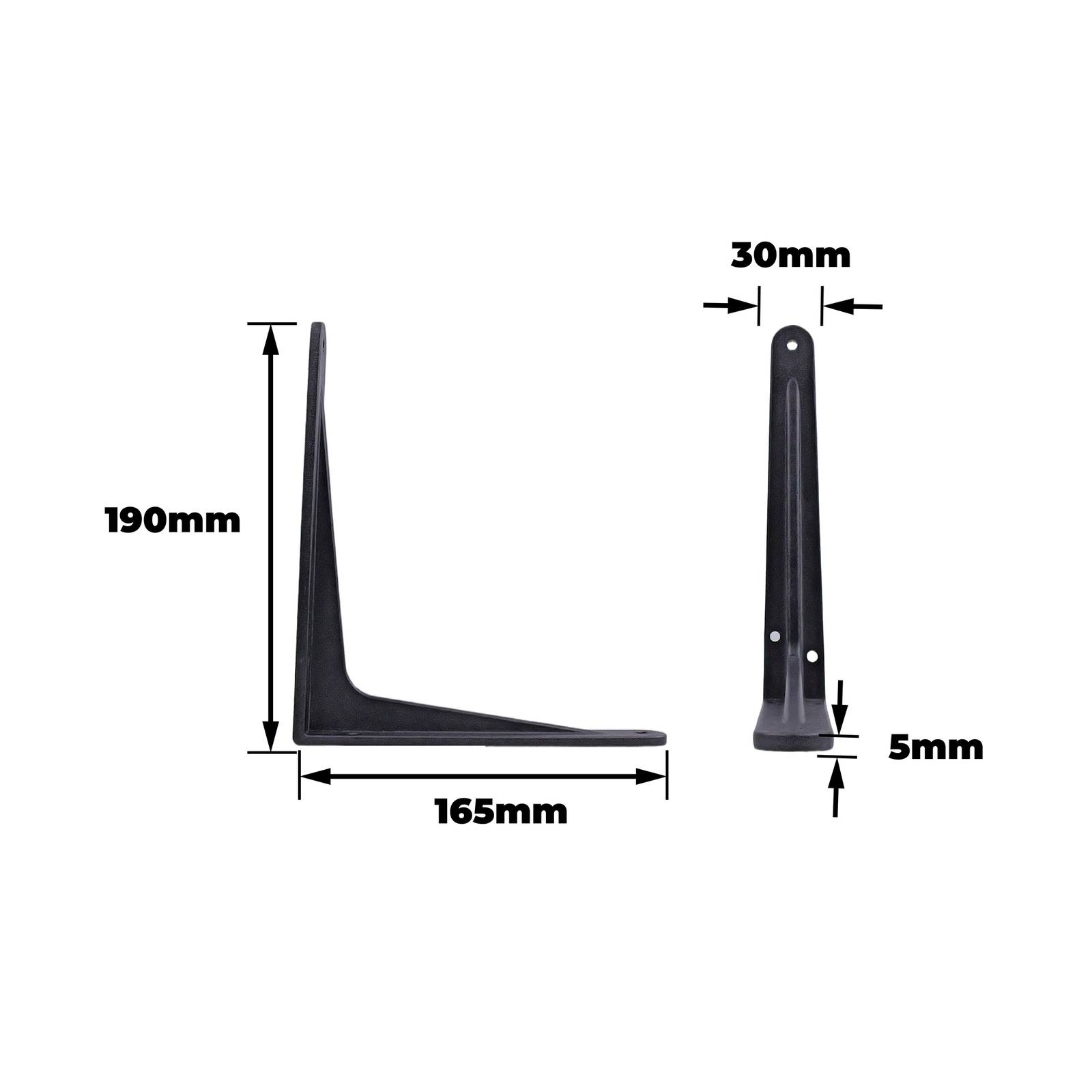 BRACKET CAST ALUMINIUM BLACK 190x165mm is a robust support bracket made from cast aluminium alloy designed for DIY enthusiasts. Ideal for light structural applications, it provides reliable support for loads up to 100 kgs. The sleek black finish and compact design make it perfect for mounting shelving, cabinetry and other installations where both aesthetics and functionality are valued.Detailed