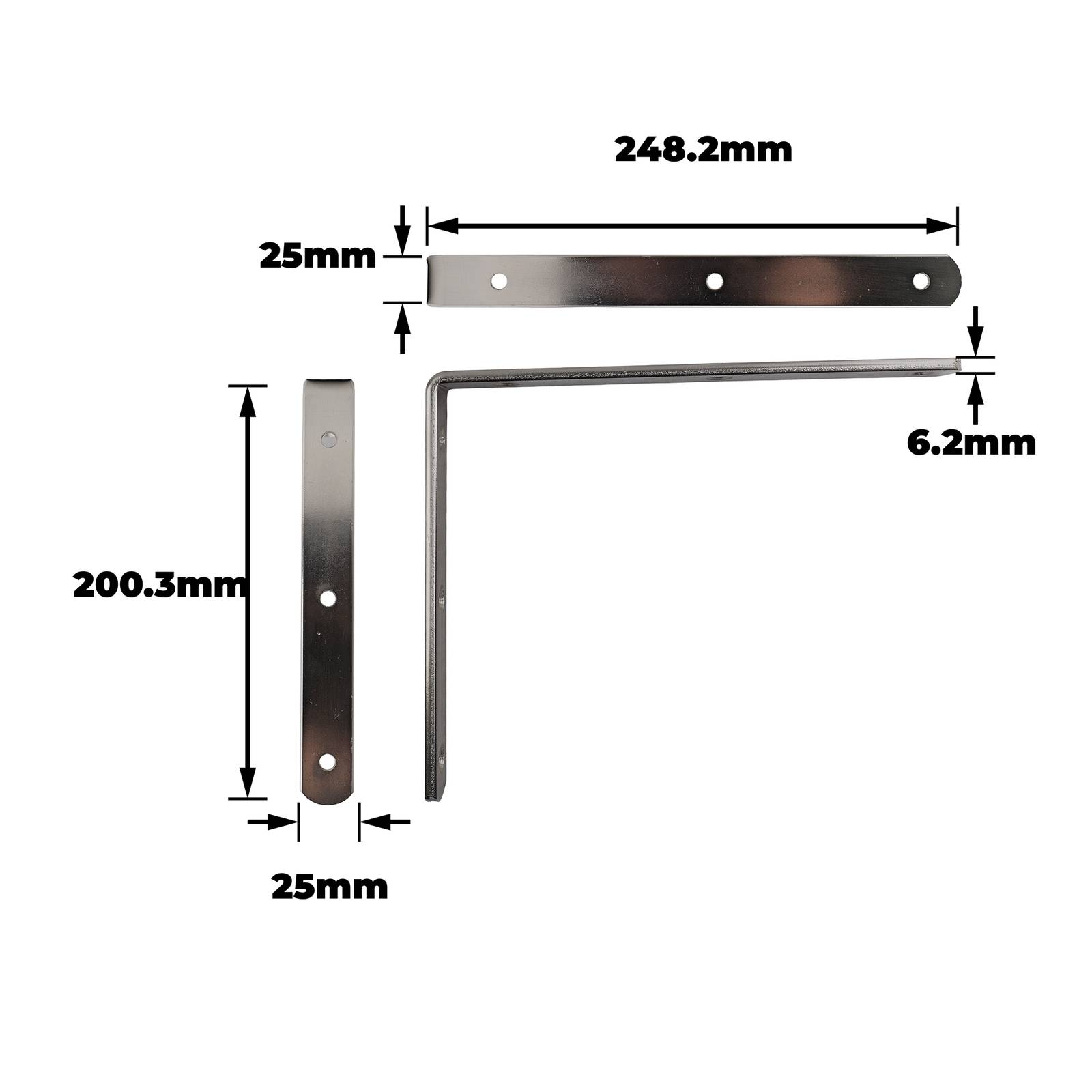 BRACKET ANGLE H/DUTY CARINYA 200X250X25X6MM SATIN CHROME